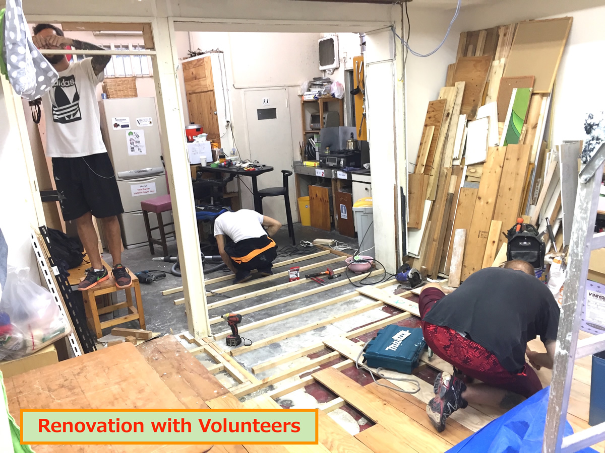 The YADOYA Guesthouse was made by YADOYA staff, friends and volunteers. Special tasks were done by professional, but we all did almost everything by hand: demolition, walls, floor, painting.